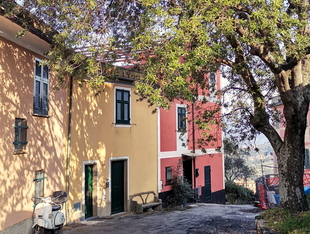 Una tipica casa ligure sviluppata su tre livelli, nella suggestiva piazzetta di Santa Giulia, Lavagna (GE).
